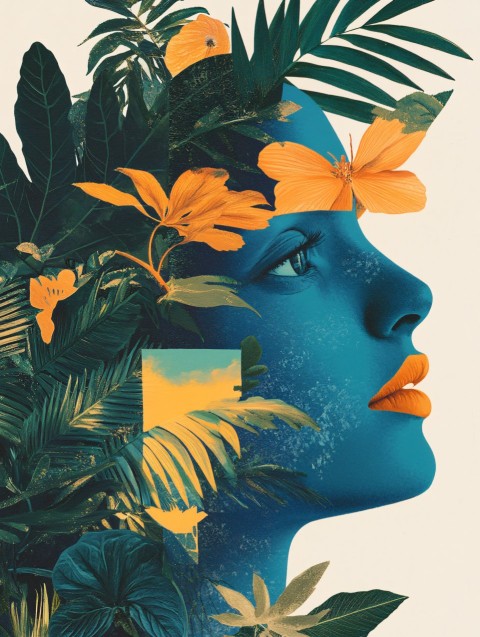 Abstract Portrait with Digital Glitch Effect in Purple and Orange