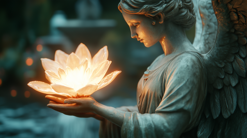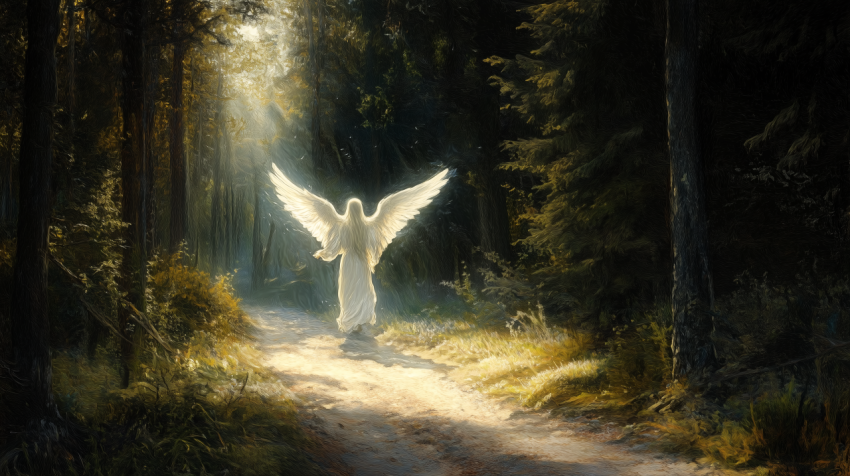 Futuristic Cyber Angel with Glowing Wings in Neon City