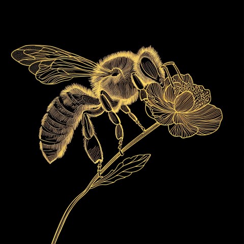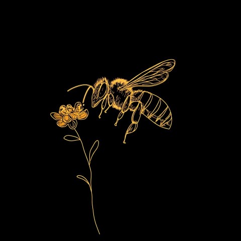 Bee Pollinating Flower in Minimal Continuous Line Art