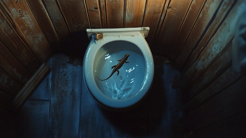 Tiny Lizard Floating in Rustic Bathroom Serenity
