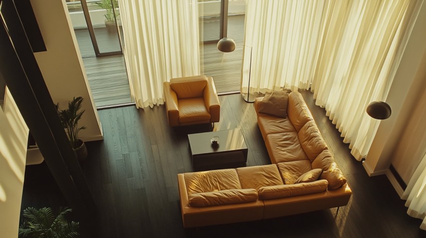 Modern Minimalist Apartment Living Room Aerial Photography by Nataly