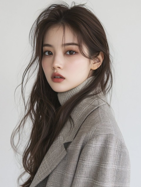 Korean Autumn Winter Fashion with Natural Brown Hair