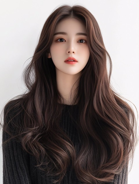 Korean Autumn Winter Fashion with French Long Brown Hair