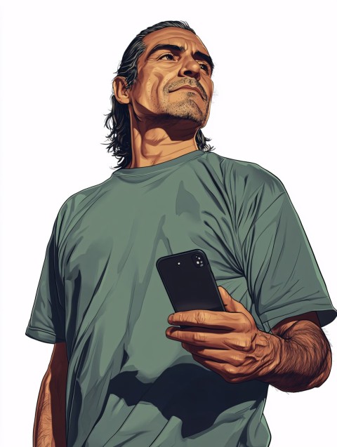 Mexican Man Holding Phone in GTA 5 Comic Style