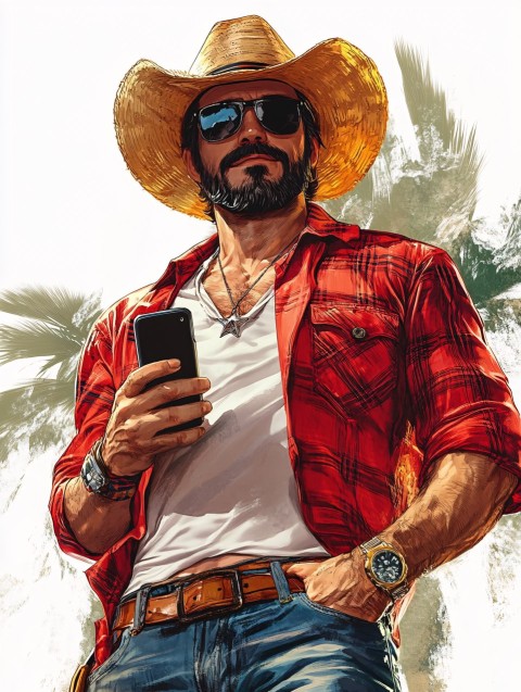 Mexican Man Holding Phone in GTA 5 Comic Style Art