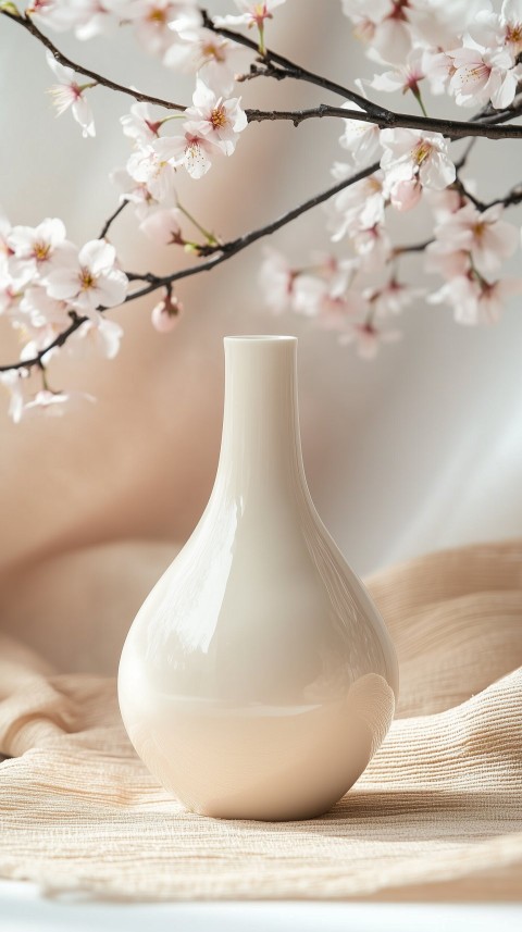Ivory Sake Bottle with Cherry Blossom Backdrop