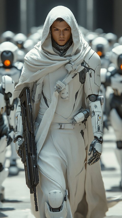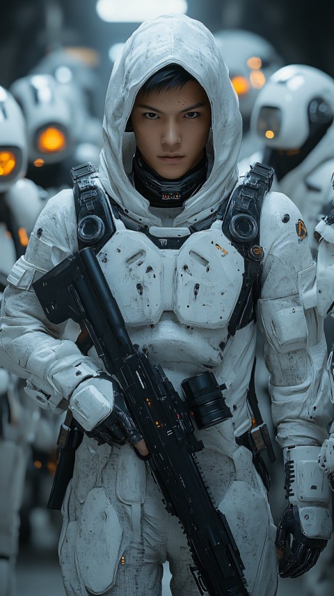Futuristic Japanese Man with Sniper Rifle