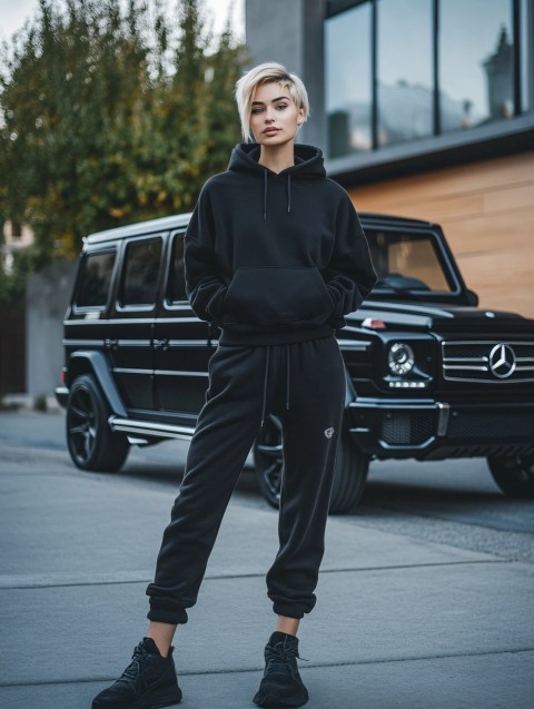 Blonde Woman in Front of Mercedes G-Wagon