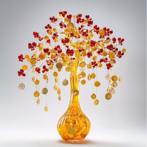 Gold Ingot Tree Sculpture with Wealth Symbolism