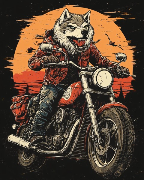 Edgy Wolf Biker Artwork for T-Shirts