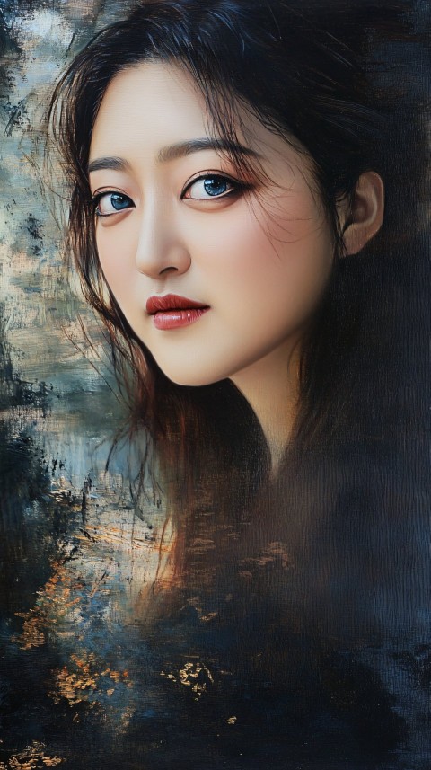 Beautiful Girl with Fantasy Landscape Background Oil Painting