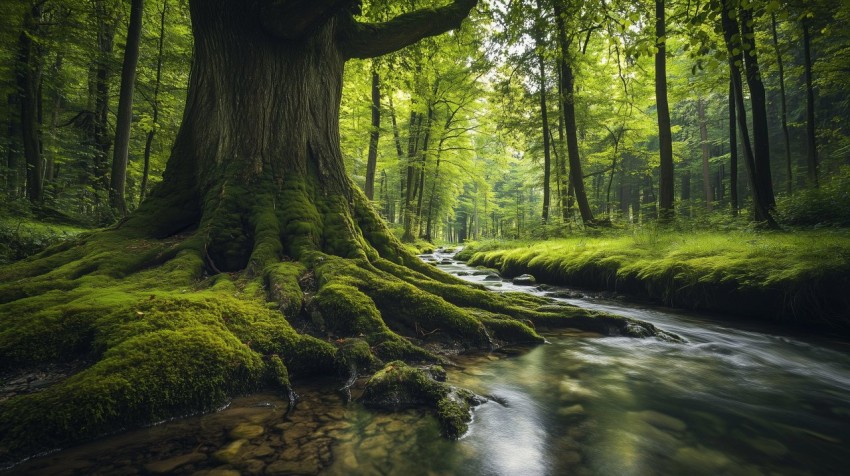 Enchanted Forest with Harp, Chandeliers, and White Rabbits
