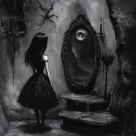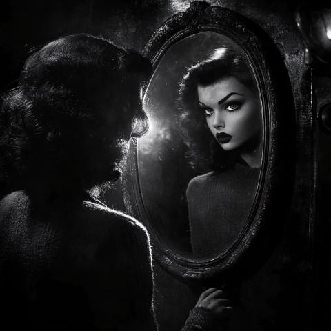Surreal Woman Standing Before Mirror in Ed Wood Style