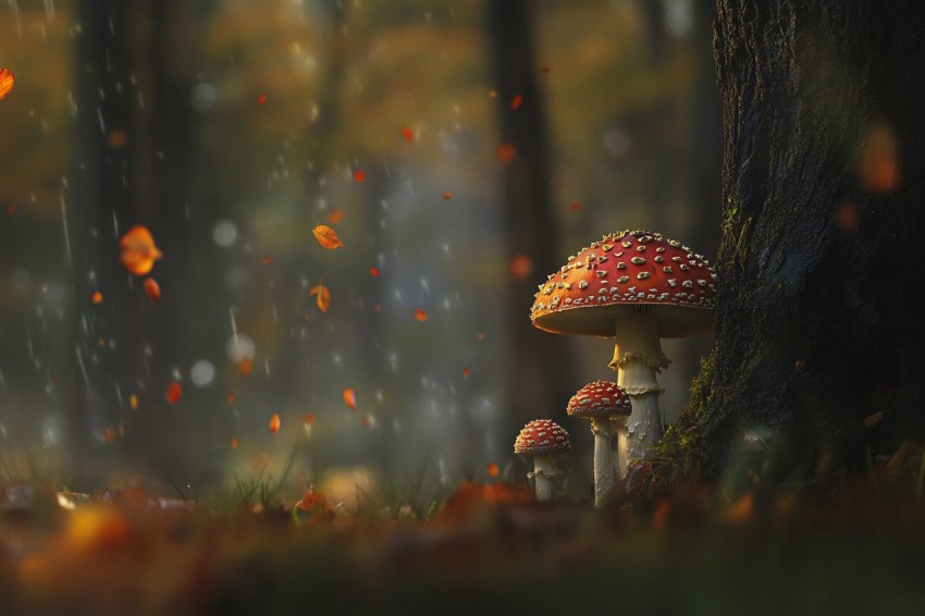 Fly Agaric Mushrooms in Autumn Academia Scene