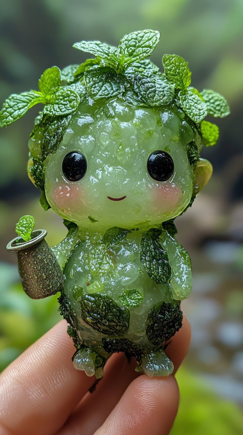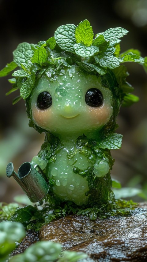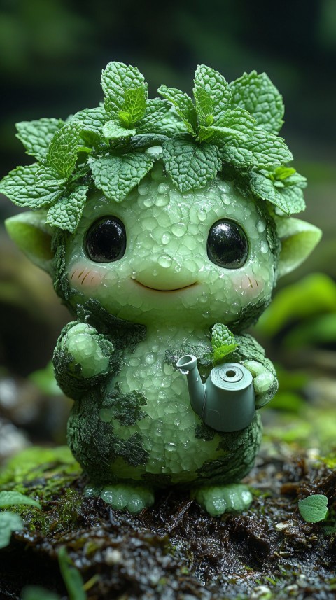 Charming Mint Creature with Watering Can