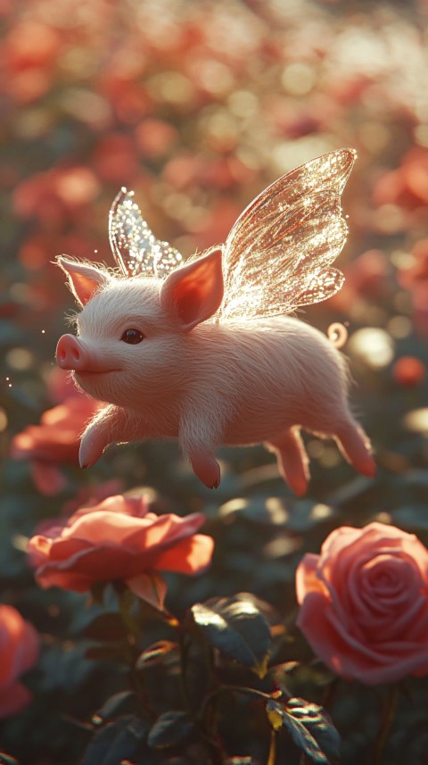 Adorable Fairy Piglet Flying Over Roses