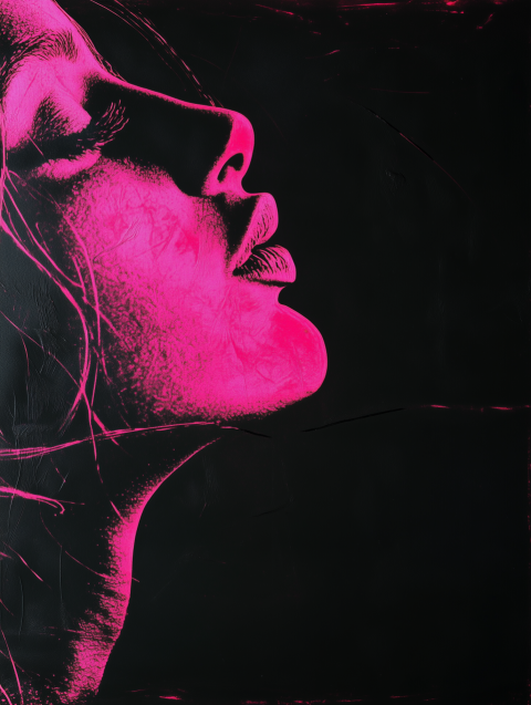 Neon Pink Silhouette of Woman’s Face on Black Background