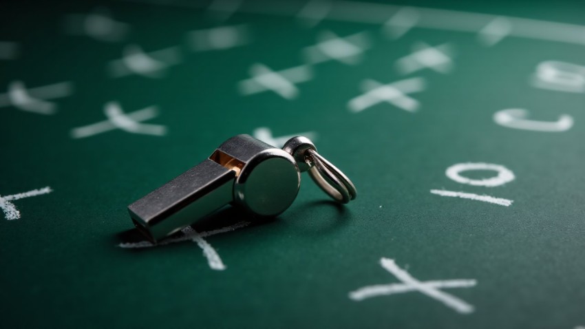 Metal Coach's Whistle on Football Play Chalkboard