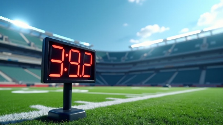 Football Play Clock on Sideline of Empty Field
