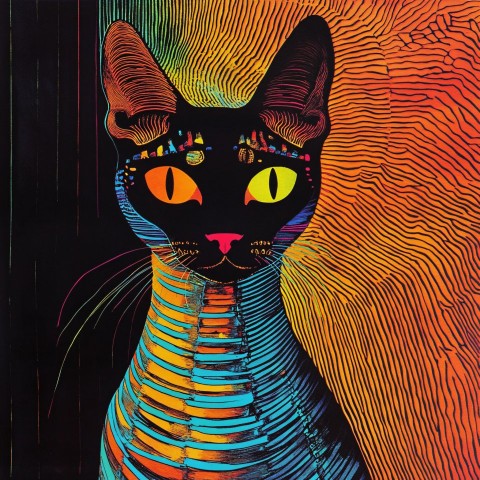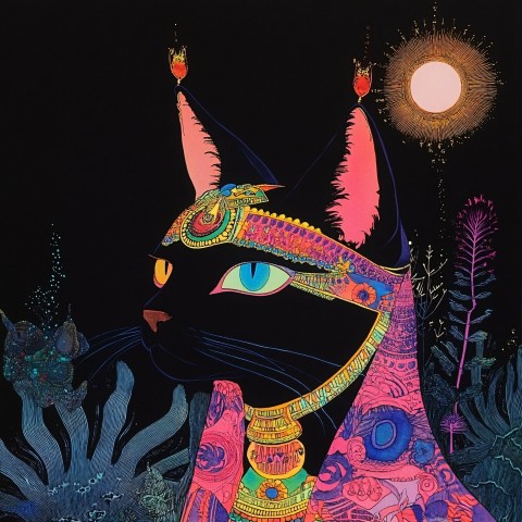 Psychedelic Egyptian Cat God Illustration in Dark Atmosphere
