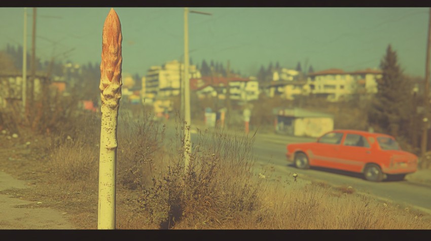 Suspicious Asparagus Sneaking in Cinematic Town Scene
