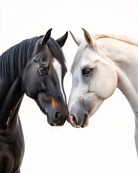 White Horse and Black Stallion in Tender Portrait