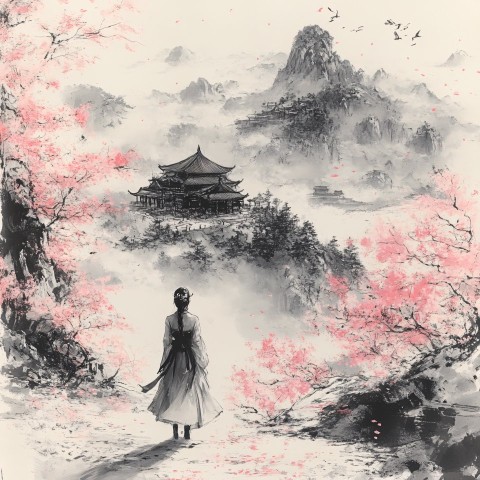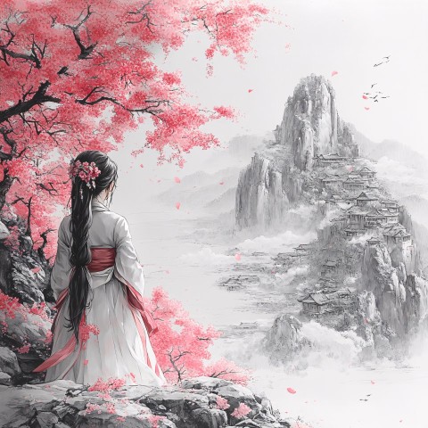 Sketch of Princess Amid Sakura Landscape by Nataly