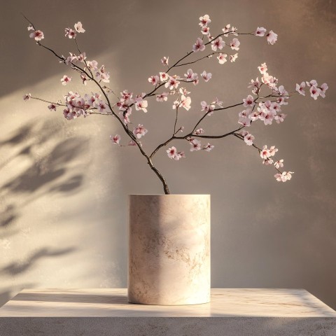 Japanese Style Cylindrical Pedestal with Sakura Branch