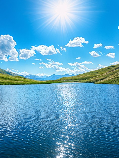 Sunny Day Lake with Clear Blue Sky Landscape by Admin