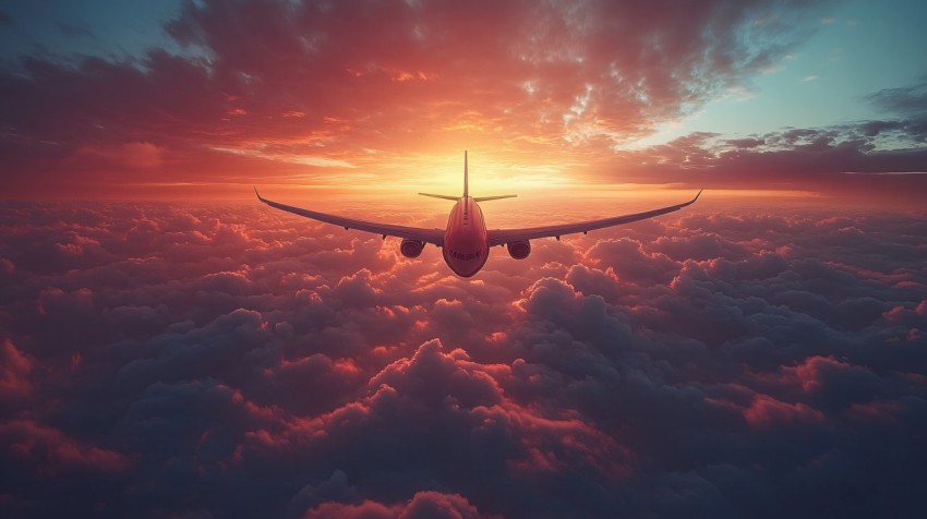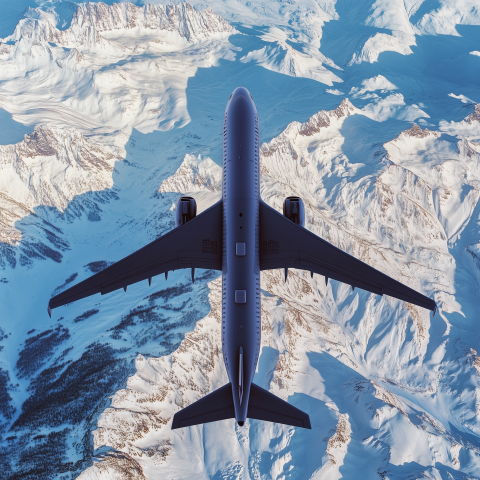 Rear-View Mirror Reflecting Airplane Takeoff Scene