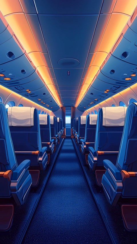 Cozy Boeing Cabin with Blue Seats and White Turbans