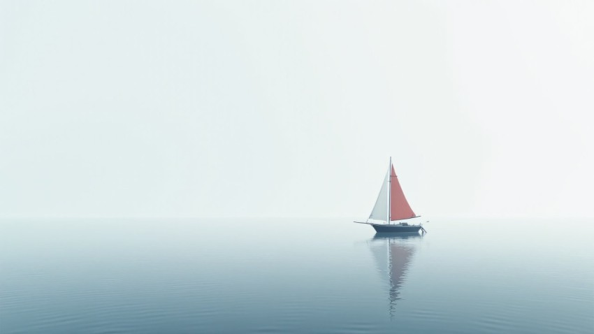 Solitary Sailboat on Calm Sea Symbolizing Journey and Direction
