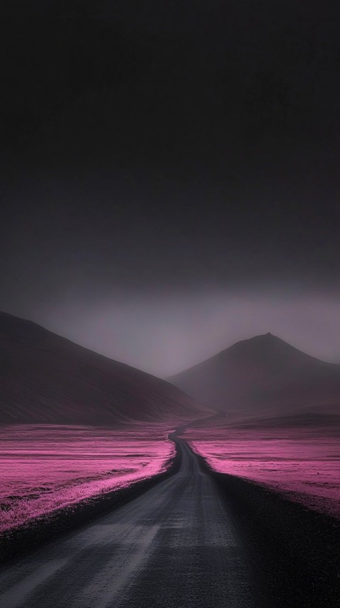 Road Tunnel with Grass-Covered Hills in a Misty Landscape