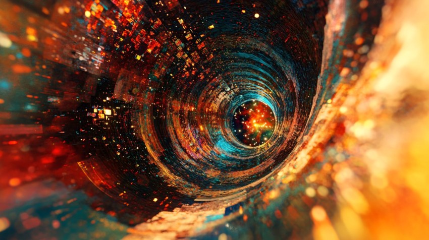 Journey Through a Colorful Space Wormhole in Sci-Fi Art
