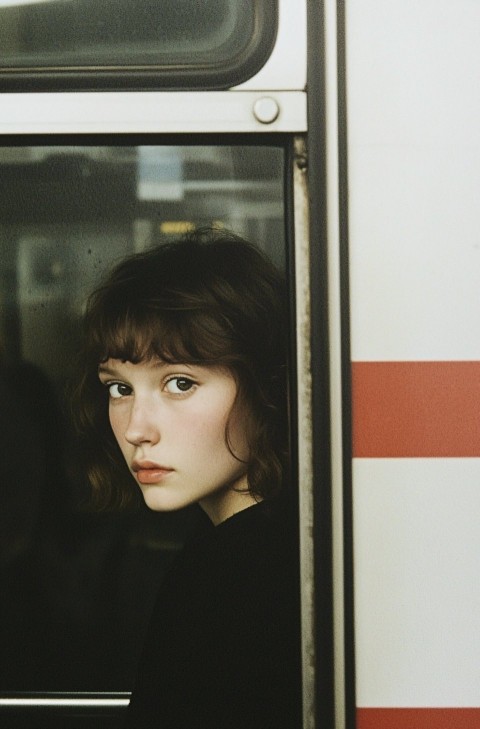 Title: "Minimalist Fashion Portrait on Subway Platform in Motion"