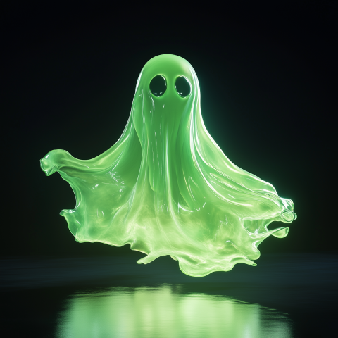 Pirate Ship with Glowing Green Ghosts on Dark Ocean