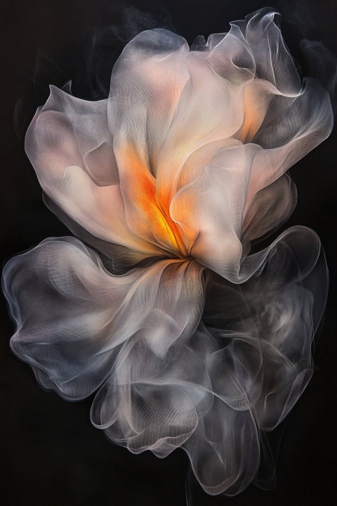 Ethereal Translucent Flowers in Pink and Purple Tones on Dark Background