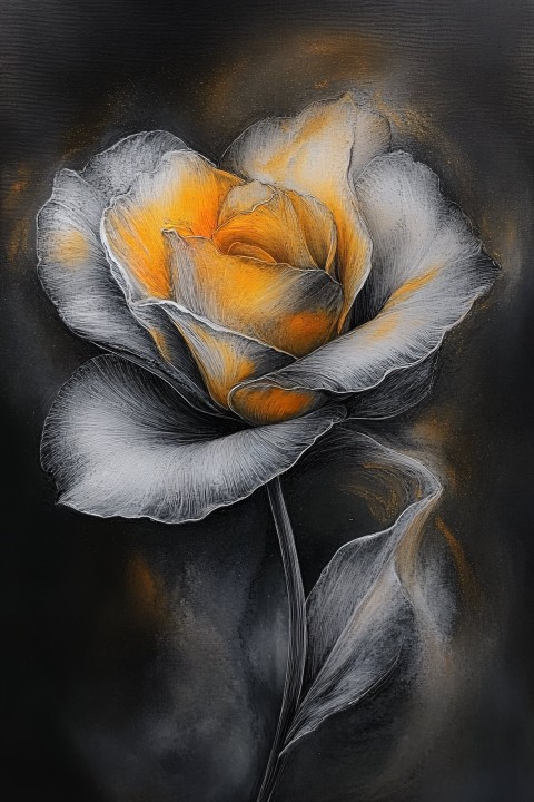 Coiled Tulip Alcohol Ink Artwork on Black Background