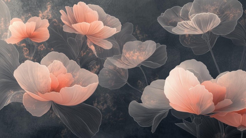 Abstract Waves with Floating Flowers and Chiaroscuro