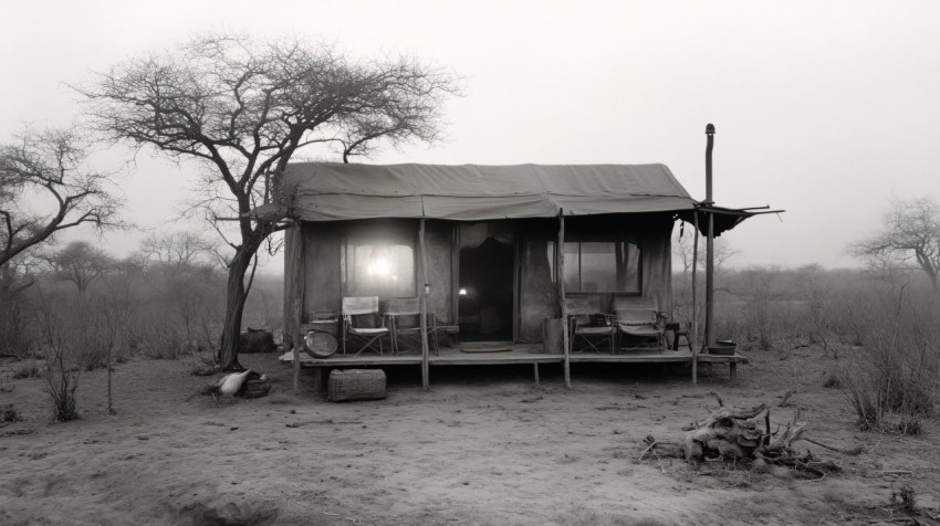 1950s African Safari Camp with Vintage Tents and Vehicles