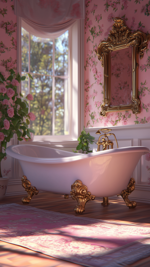 Luxurious Vintage Bathroom with Clawfoot Bathtub and Ornate Decor