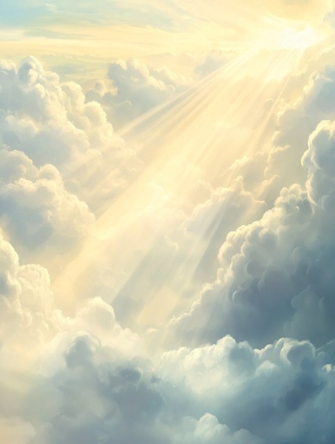 Peaceful Sky View with Sunlit Fluffy Clouds