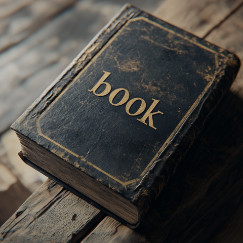 Vintage Leather Bound Book with Gold Lettering on Wooden Surface