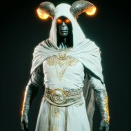 This full-body character design features an eldritch god crafted in Unreal Engine, showcasing a striking figure with imposing horns and malevolent eyes. Clad in ancient robes that drape elegantly around its form, the character embodies the essence of dark fantasy. The robes are adorned with intricate, detailed textures, enhancing the sinister aesthetic that defines this powerful being. Hyper-realistic rendering brings every aspect of the character to life, from the textures of the fabric to the menacing glare of the eyes. The use of Octane render showcases the full-length character in stunning detail, creating a captivating visual that evokes a sense of awe and dread. This design is perfect for game developers, artists, or enthusiasts looking to explore the realms of cosmic horror and dark mythology.